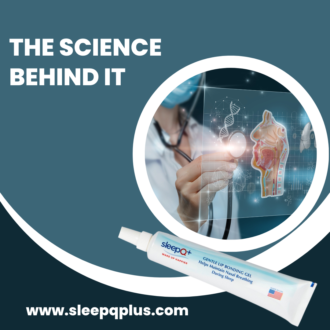 sleepQ+ is a revolutionary new product that helps you maintain nasal-only breathing while you sleep. It is a reversible bonding gel that releases instantly when touched by the tongue, re-engages when the lips close again and washes off with water in the morning.